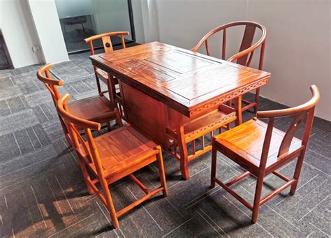 红木餐桌茶桌一体家具