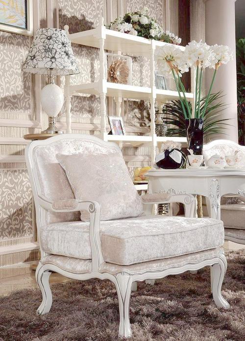 如果您偏好浪漫的乡村风格,可以选择一款浪漫的乡村风壁纸搭配您的欧式家具。选用淡雅的花朵图案或者田园风景图案的壁纸,颜色可选择粉色、淡蓝或奶白色系,打造出温馨浪漫的家居氛围。如下图所示: