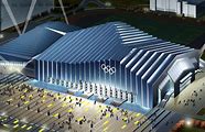 :摔跤馆的设计融合了中国传统文化元素和现代建筑技术,如采用了中国传统建筑的屋顶设计,展现了独特的建筑美学。